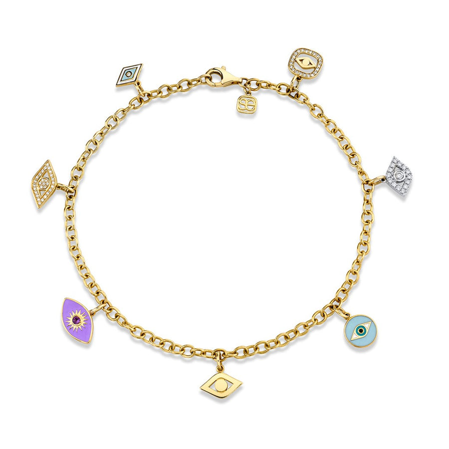 A modern talisman for protection and personal style, this 14k yellow gold anklet features a curated collection of iconic Sydney Evan protective eye charms, each symbolizing spiritual defense and mindful energy.