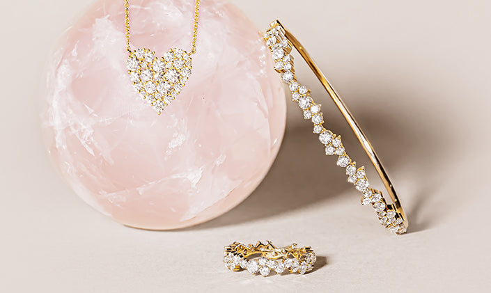 Gold & Diamond Eternity Heart Rondelle on Pearls
