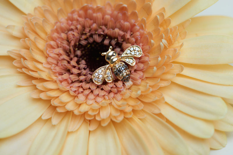 Gold & Diamond Small Bee on Rainbow Moonstone
