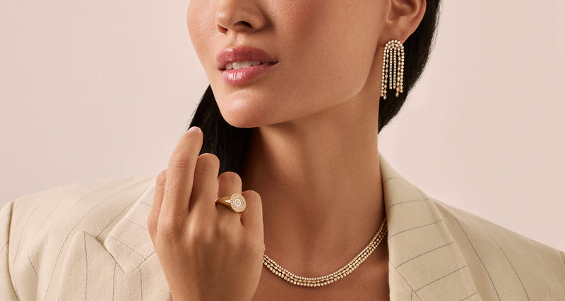 Gold & Diamond Tri Linked Ring Hoop Earrings