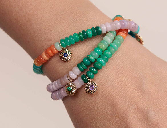 Pure Gold Tiny Multi-Charm on Semi-Precious Beads