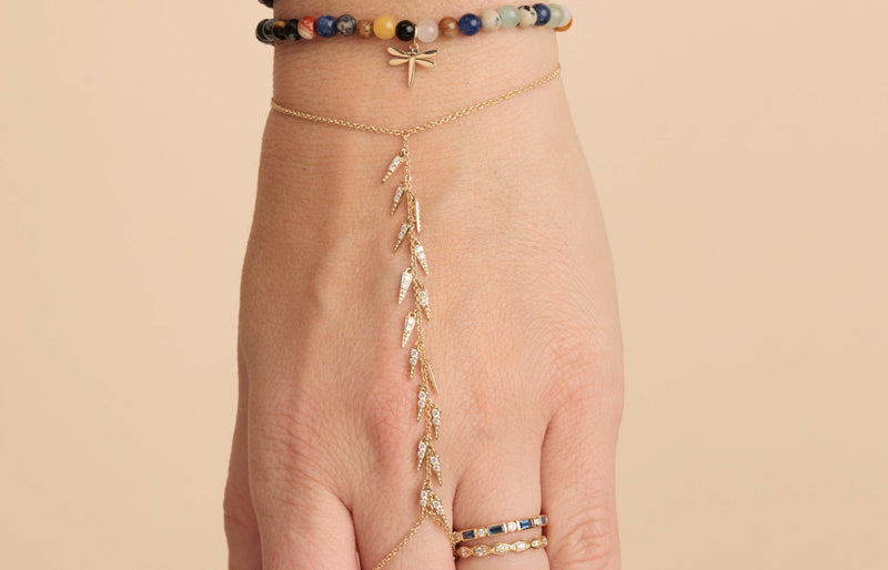 From intricate fringe, to beloved Sydney Evan icons and classic hearts, our hand bracelets add a unique touch to any look.