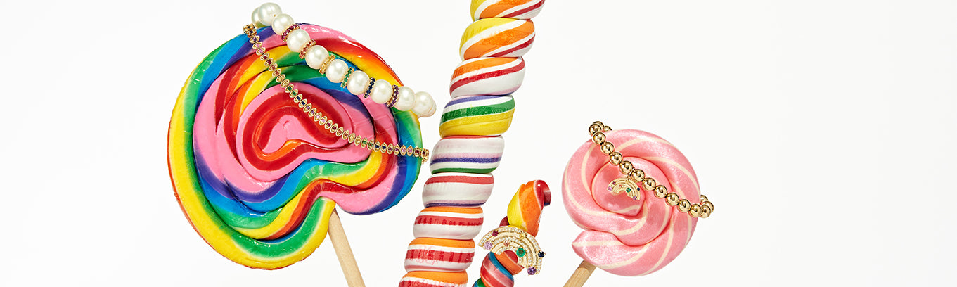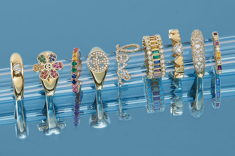 Gold & Rainbow Baguette & Round Bezel Stacked Eternity Ring