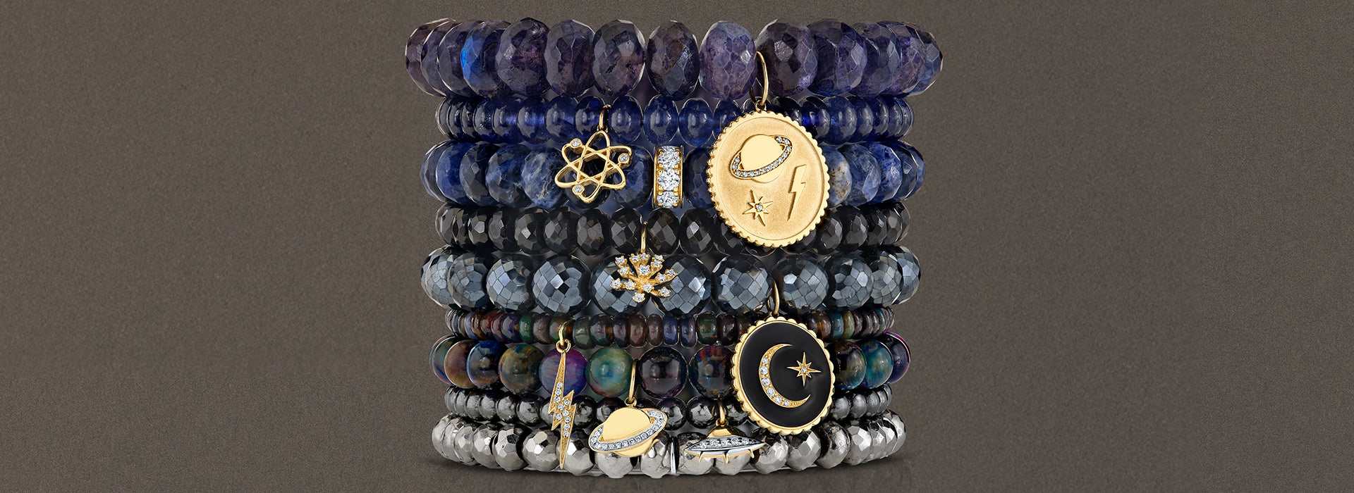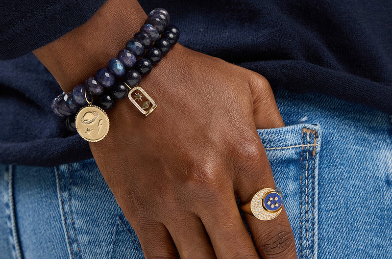 Gold & Diamond Cosmos Charm on Blue Sapphire