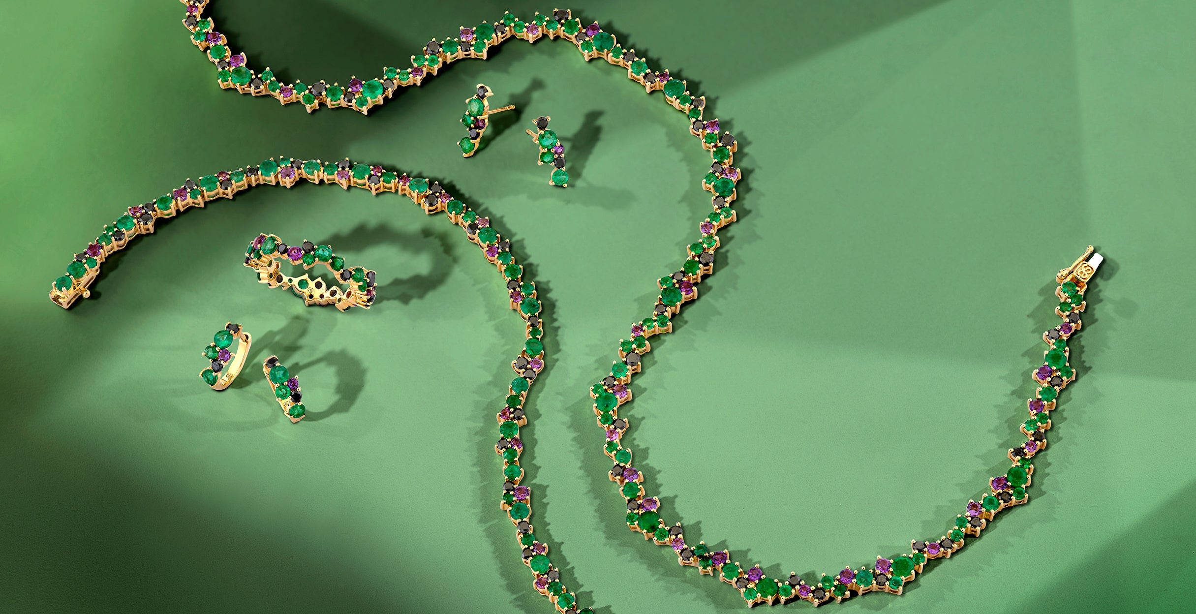 Gold, Emerald & Amethyst Wicked Elphaba Cocktail Eternity Necklace