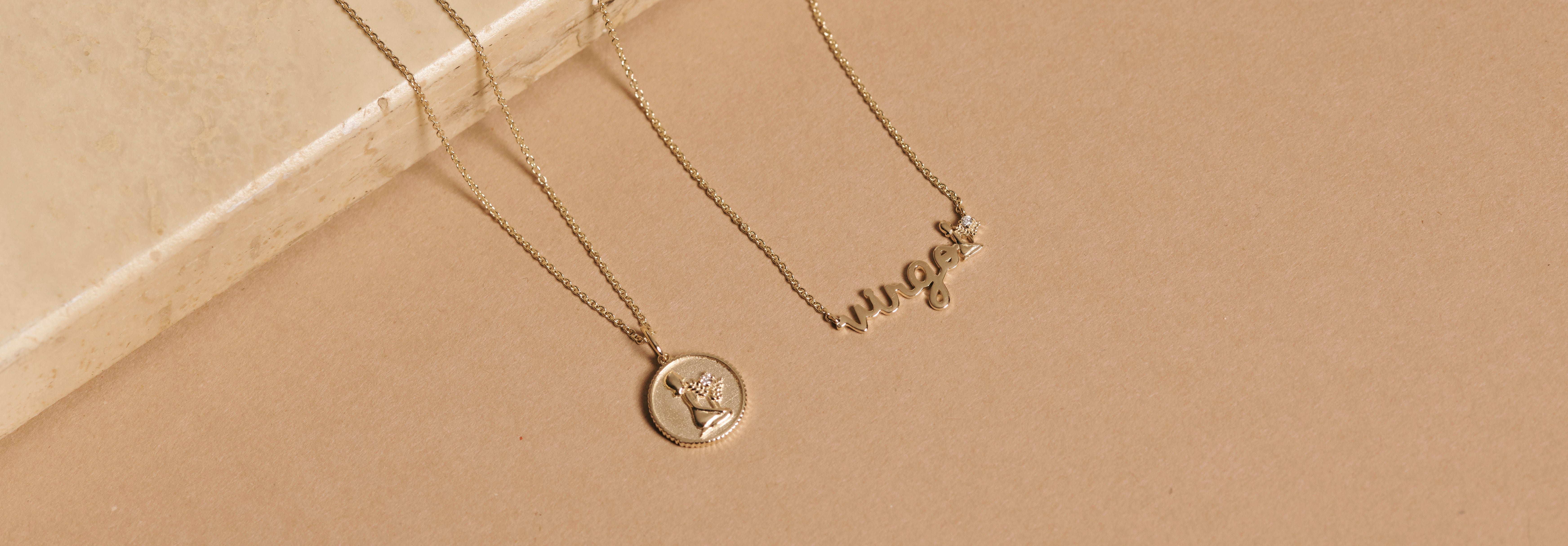Gold & Diamond Small Zodiac Medallion on Gold Beads