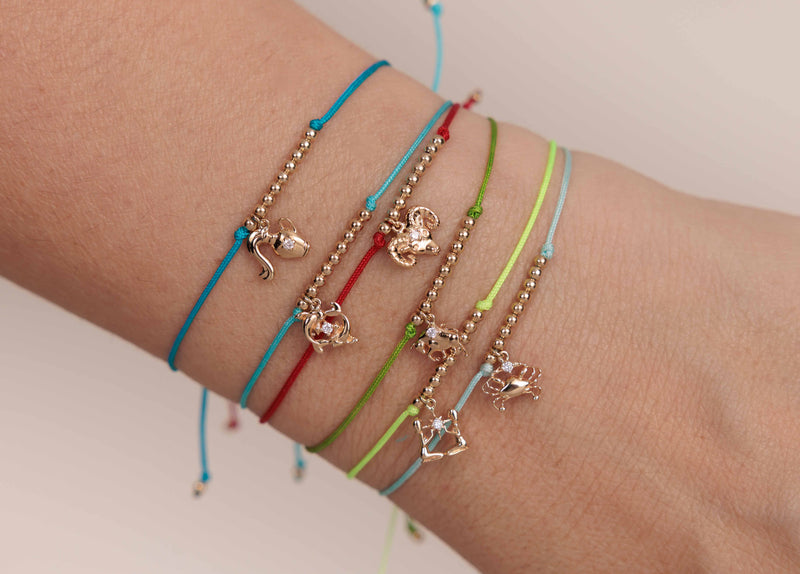 Gold & Diamond Tiny Leo Zodiac Cord Bracelet