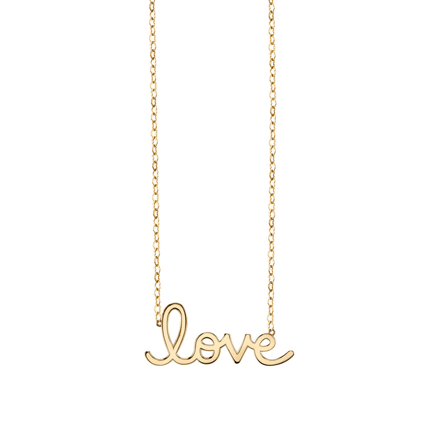 14k Gold Love Necklace from our Pure Collection, crafted to embody the timeless essence of love and connection. The word "Love" is elegantly spelled out in our signature script, symbolizing the unbreakable bonds that unite us. Suspended from a delicate 16-18" heart link chain, this piece represents the beauty of heartfelt emotions. The "Love" pendant measures approximately 1 1/5" across, making it a subtle yet powerful reminder of love's presence in our lives. Perfect for gifting or as a personal statement, this necklace is a symbol of love's enduring power.