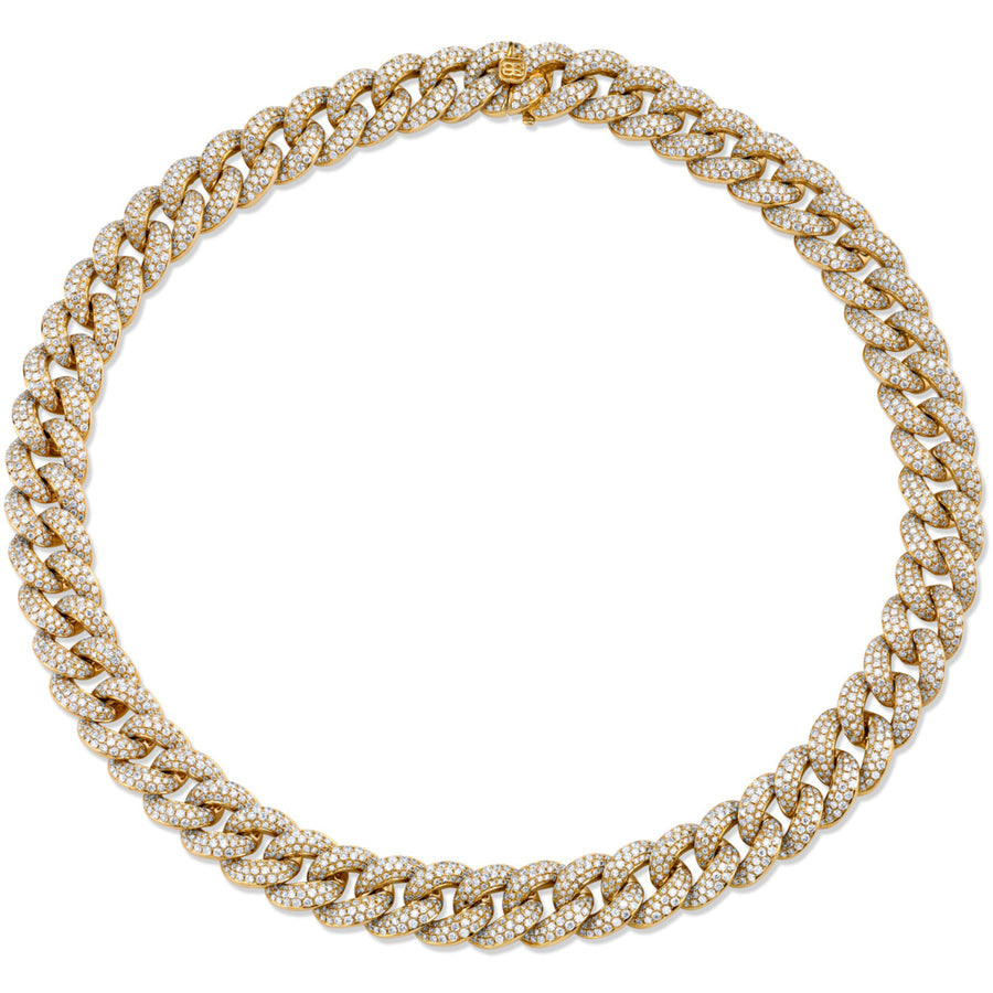 Make a bold yet refined statement with this stunning 14k gold link necklace, meticulously crafted with pavé-set diamonds in every link. Each luminous link, measuring approximately 1/2" x 1/2", is a symbol of strength, unity, and everlasting brilliance—capturing the beauty of connection in every facet.