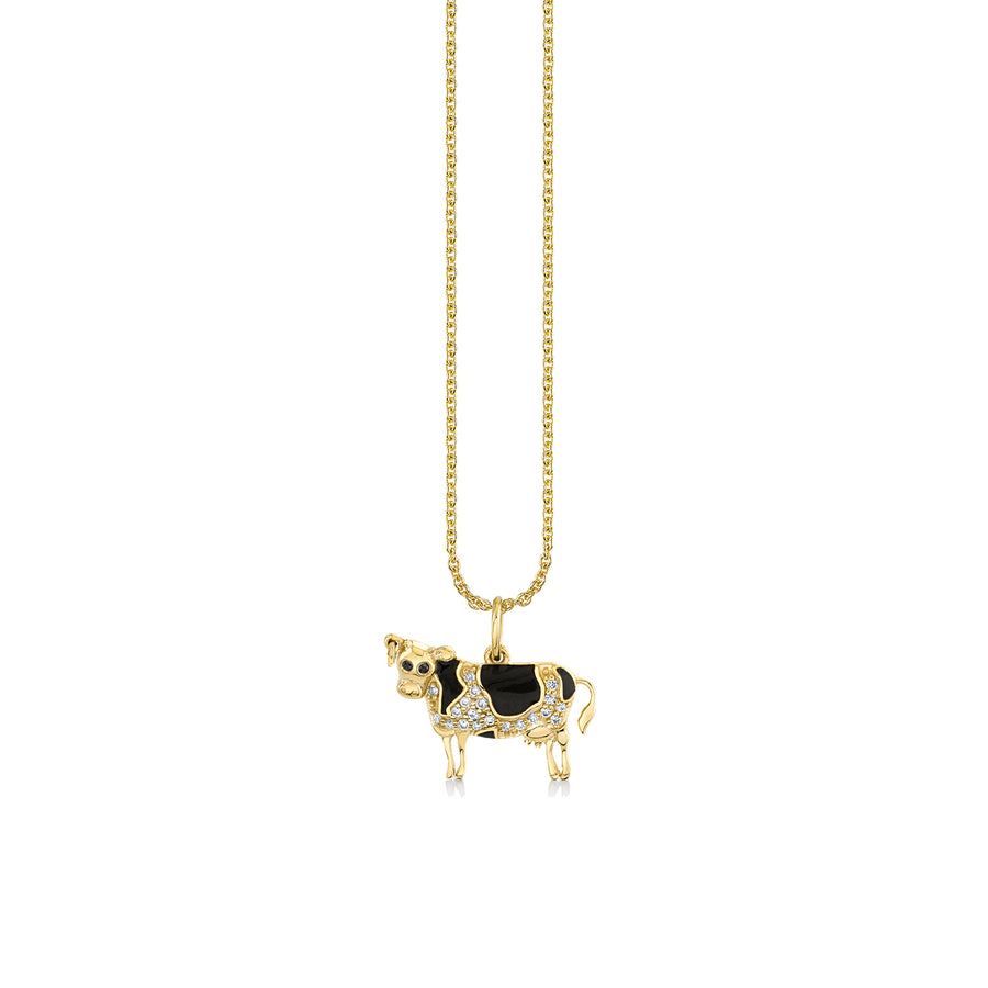 Add a touch of charm and countryside whimsy with our Bessie cow charm necklace, crafted in 14k yellow gold and adorned with pavé diamonds and brown enamel detailing. Suspended from a fine 14k gold cable chain measuring 16" with an 18" extender, this playful piece is full of personality and sparkle.