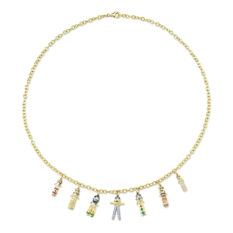 Gold & Diamond Doll Multi-Charm Necklace
