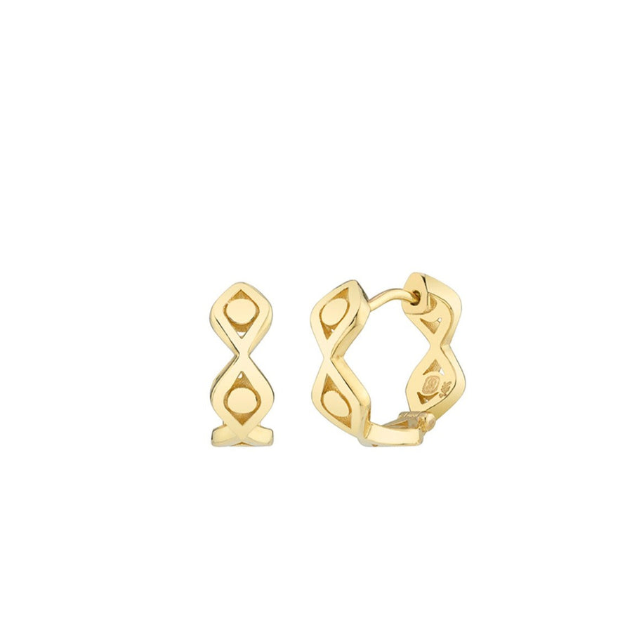 The 14k yellow gold protective eye link huggie hoops from our Pure Collection are a striking blend of style and symbolism. Crafted from high-quality 14k yellow gold, these earrings feature a delicate protective eye design, renowned for its protection and good fortune properties. The protective eye is believed to ward off negative energy and offer a shield against harmful influences, making these hoops not just an accessory, but a meaningful talisman. With fine 14k gold posts and backings, these huggie hoops ensure a secure, comfortable fit while adding a touch of luxury to your everyday look. Elevate your jewelry collection with a piece that embodies both elegance and protection.
