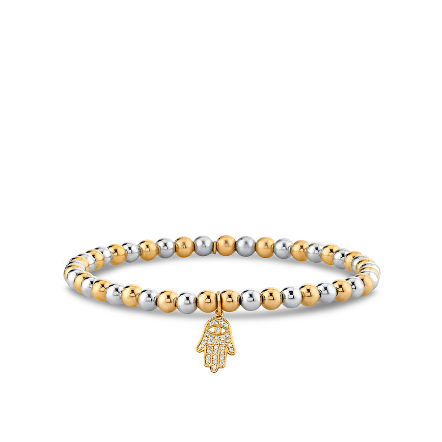 Gold & Diamond Hamsa on Two-Tone Gold Beads