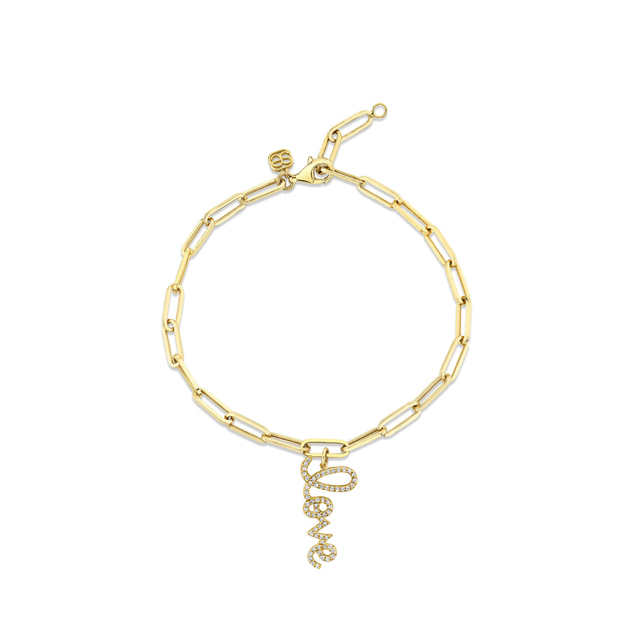 Made with 14k yellow gold and adorned with sparkling diamonds, this bracelet exudes elegance and sophistication. The medium-sized love charm adds a touch of romance and sentimentality to the piece, making it a meaningful gift for a loved one.