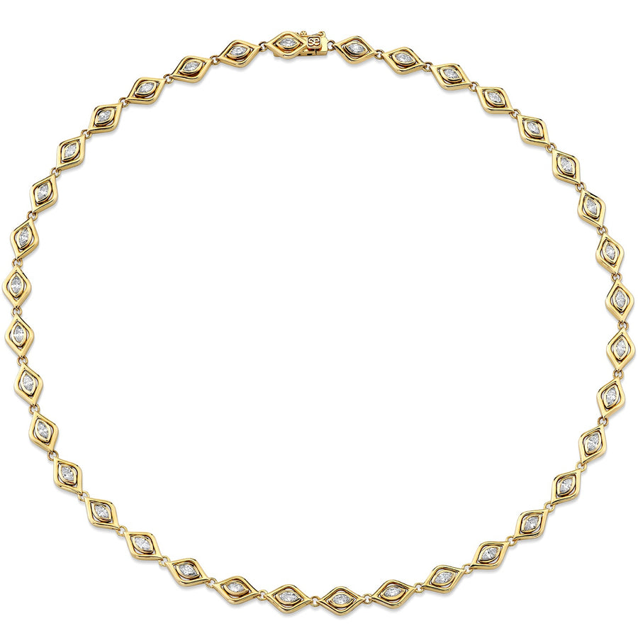 Embrace the beauty and symbolism of the Gold & Diamond Marquise Protective Eye Eternity Necklace and let it be a symbol of your everlasting love and protection. .