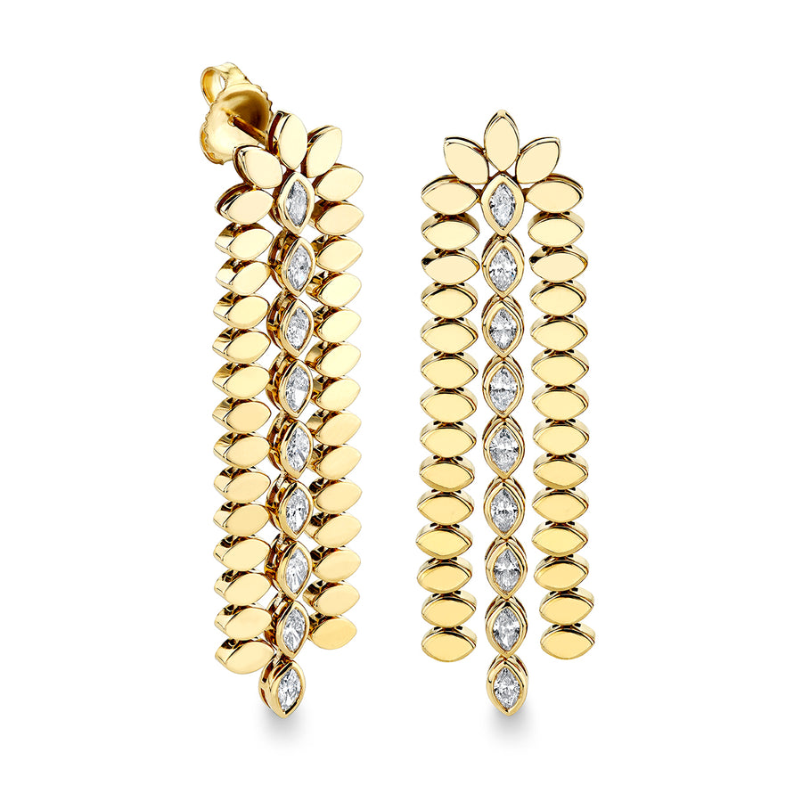 Gold & Diamond Marquise Eye Long Drop Earrings