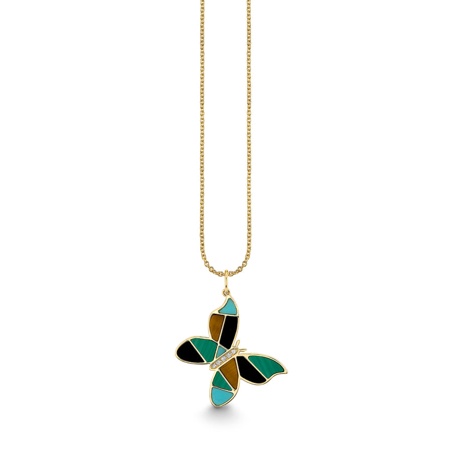Embrace elegance and whimsy with this stunning 14k yellow gold and diamond mosaic butterfly charm. Crafted with meticulous attention to detail, the charm measures approximately 1"W x 1"H and showcases a delicate mosaic design adorned with sparkling diamonds, creating a captivating play of light and texture.