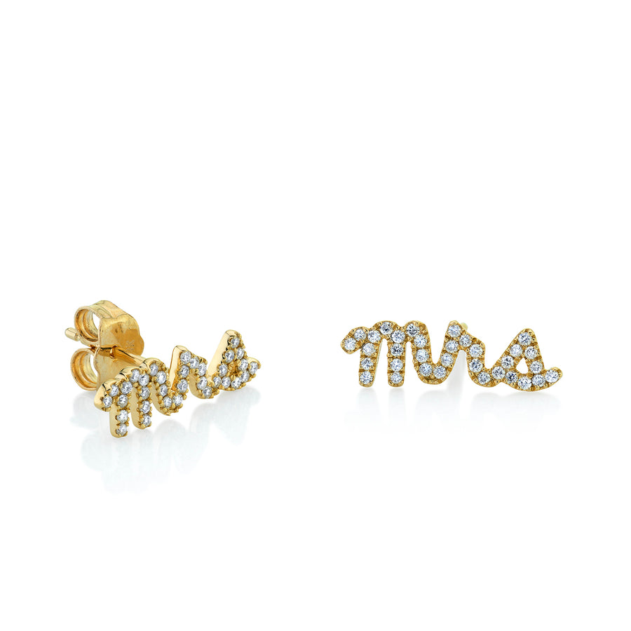 Celebrate love and commitment with these delicate 14k yellow gold MRS script stud earrings, featuring sparkling pavé-set diamonds that add subtle brilliance. Crafted with fine 14k gold posts and secure backs, these studs offer comfortable all-day wear with a personalized touch.