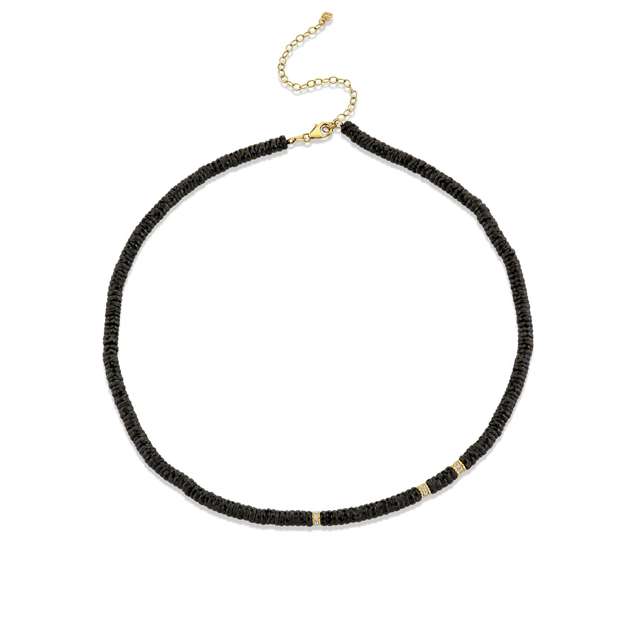 Gold & Diamond Multi Rondelles on Black Spinel Necklace