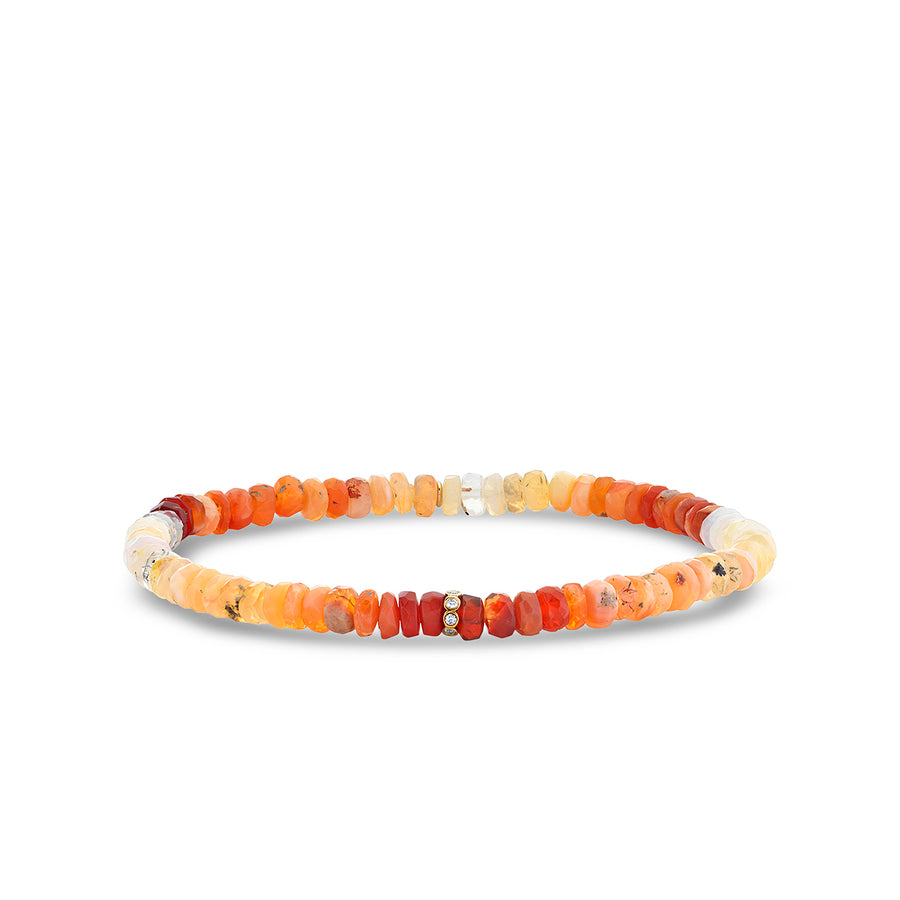 14k yellow gold and diamond rondelle on 4mm fire opal faceted beads. All Sydney Evan beaded bracelets are strung on a stretch cord along with our 14k gold SE logo charm. Beads color and shape may vary slightly due to the nature of the precious and semi-precious stones. Standard size is approximately 6.25", for all custom size requests, please contact us.