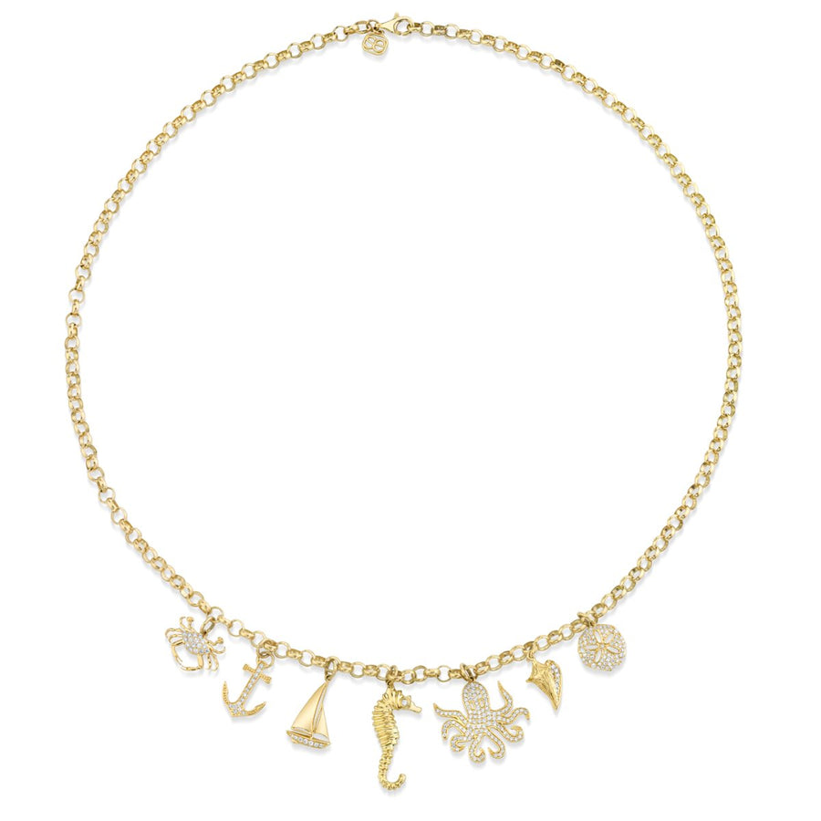 Gold & Diamond Sea Creatures Multi-Charm Necklace