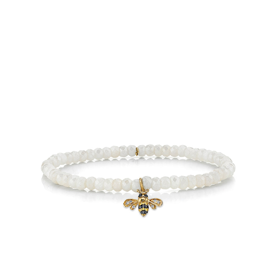 Gold & Diamond Small Bee on Rainbow Moonstone