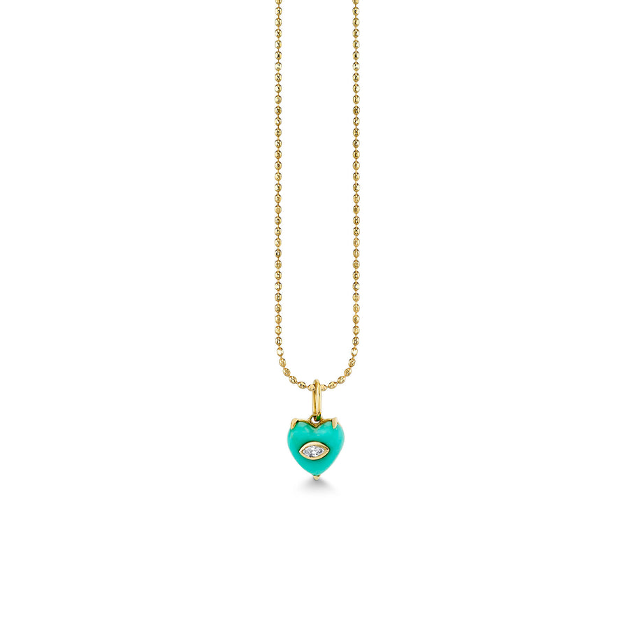 Crafted from 14k yellow gold, this charm features a beautifully carved stone heart with a diamond marquise eye, adding a touch of elegance and sparkle. Measuring approximately 1/4'W x 1/4'H, this charm is the perfect size to add to a necklace. Its intricate design and high-quality materials make it a reliable and timeless piece that will be cherished for years to come.