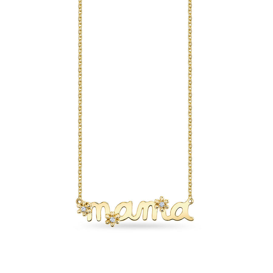 Gold & Diamond Small Mama Script Tiny Daisy Necklace
