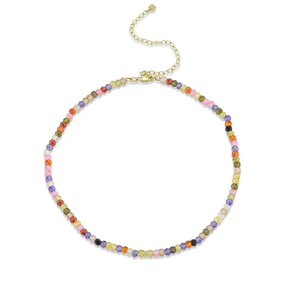 Gold & Diamond Small Rondelle Rainbow Zircon Choker