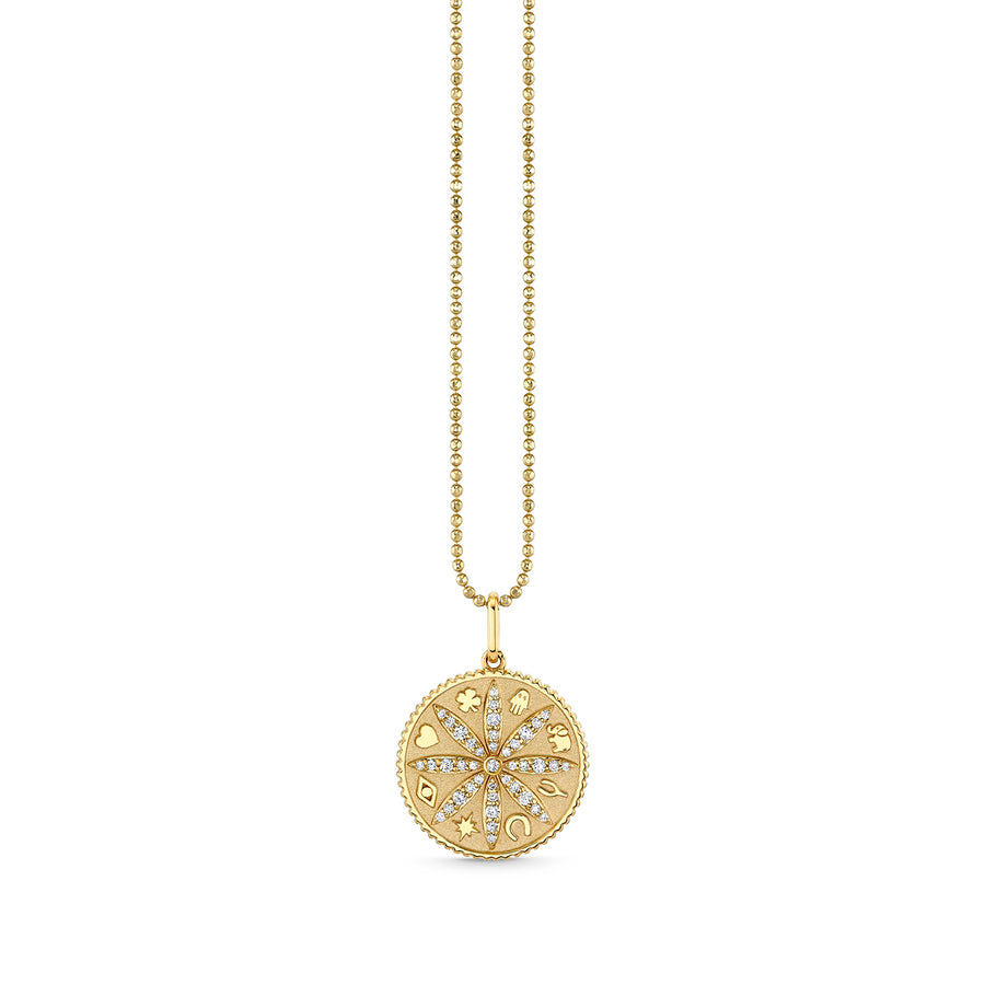 Discover the enchanting allure of our 14k yellow gold and diamond sand dollar charm, a piece rich in symbolism and beauty. Measuring approximately 3/4', this exquisite charm captures the delicate patterns of a sand dollar, a creature long revered as a symbol of peace, tranquility, and good fortune.