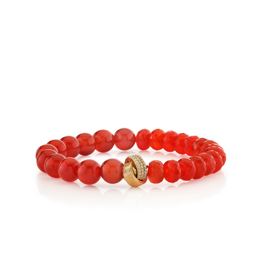 Gold & Diamond Split Carnelian Beaded Bracelet