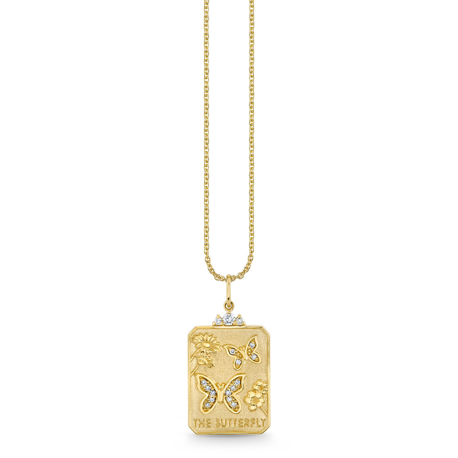 Crafted from 14k gold, The Butterfly Tarot Card Charm features an intricate tarot-inspired design adorned with diamond-studded butterflies. A symbol of transformation and beauty, it brings a touch of sparkle and meaning to your collection.