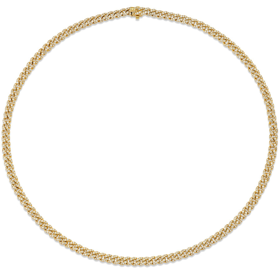 Made from 14k gold, each link measures 4mm and is adorned with pavé-set diamonds. The result is a luxurious and eye-catching design that is sure to turn heads.