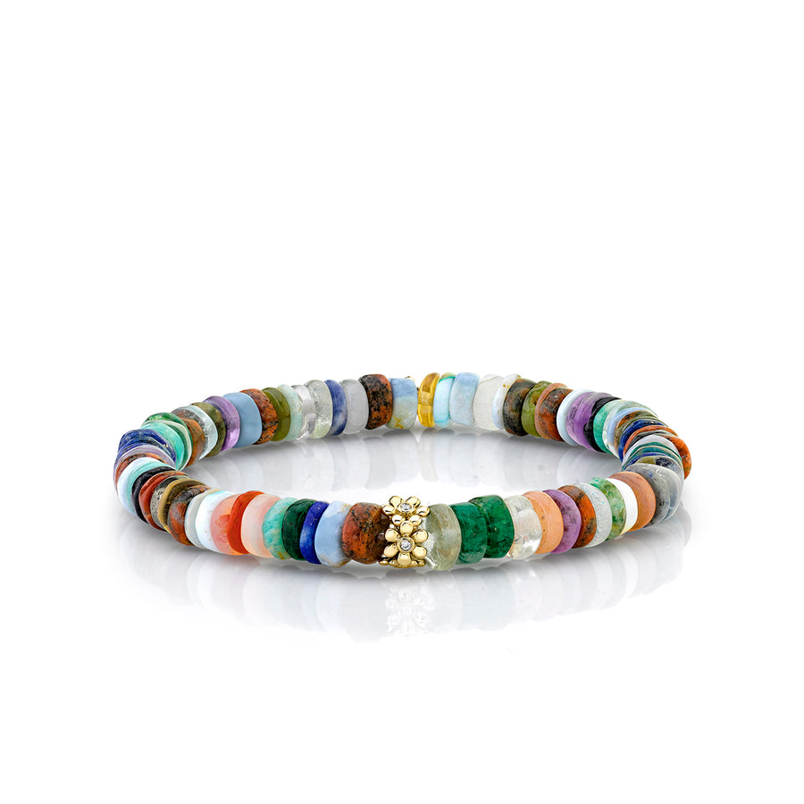 Gold & Diamond Tiny Daisy Rondelle on Rainbow Heishi