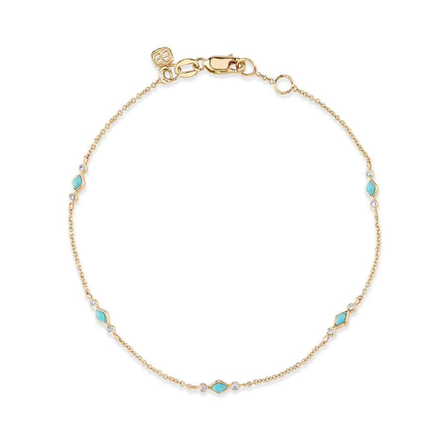 Gold Turquoise & Diamond Bezel Segment Bracelet