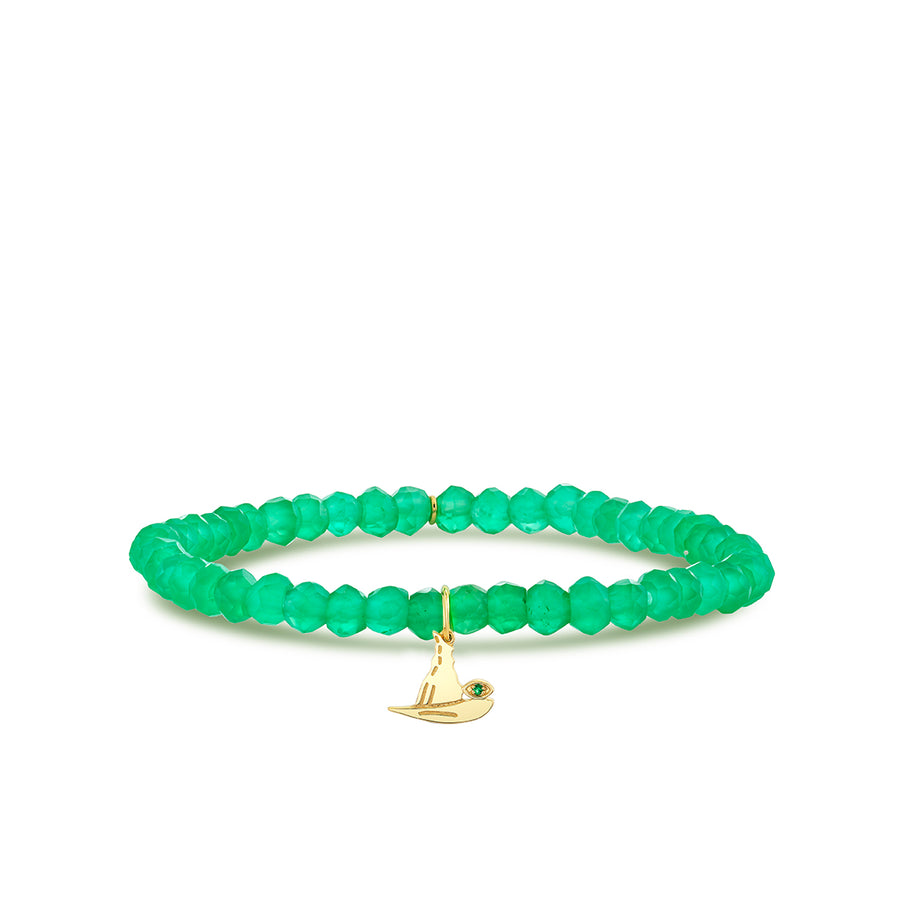 Crafted from 14k gold, this charming bracelet features the whimsical pure hat charm accented by a vibrant emerald that adds a touch of sophistication. The playful design captures the essence of fun and adventure, making it an ideal accessory for those who appreciate unique elegance.