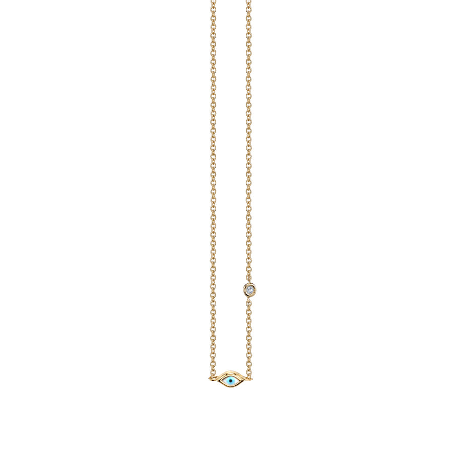 Gold Mini Enamel Eye Necklace with Bezel-Set Diamond