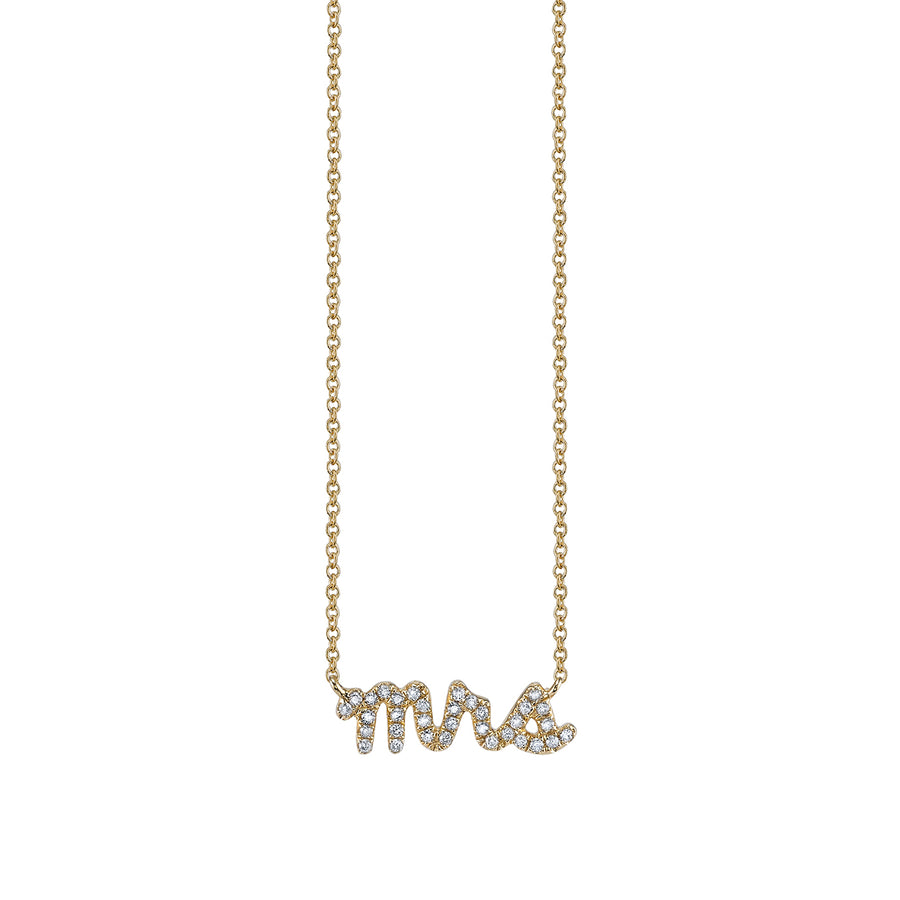Celebrate love and commitment with this elegant 14k gold “Mrs” necklace, beautifully spelled out in our signature SE hand-drawn script. Adorned with sparkling pavé diamonds, this necklace offers a sophisticated and personal touch, perfect for newlyweds or as a meaningful gift. The 18" chain provides a comfortable, classic length for everyday wear.