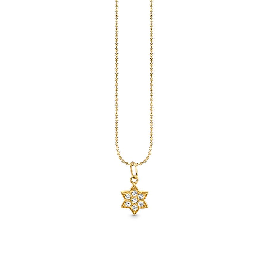 Made from 14k gold and adorned with sparkling pave diamonds, this charm is a beautiful representation of the Jewish Star of David. Measuring approximately 3/8' x 3/8', it is the perfect size to add to a necklace or bracelet.