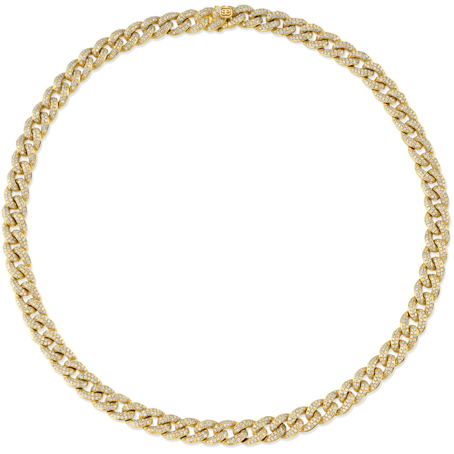 Available by special order only, this exquisite 14k gold small link necklace features pavé-set diamonds in every link, creating a continuous sparkle that catches the light with every movement. Each delicate link measures approximately 0.29" x 0.39", while the necklace itself is 16" long, offering a refined and versatile accessory that elevates any outfit. Crafted for those who appreciate subtle luxury and timeless elegance, this necklace is a dazzling statement piece designed to shine on every occasion.