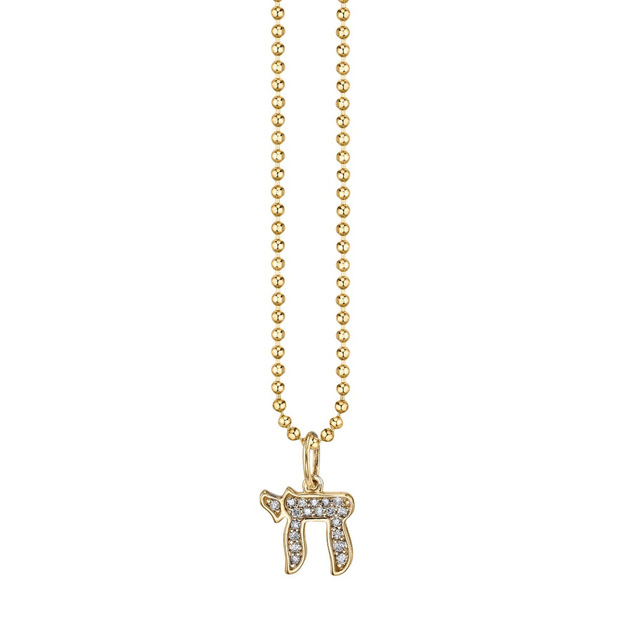 Celebrate faith and life’s blessings with this elegant 14k gold medium Chai charm necklace, featuring a dazzling diamond accent. The Chai charm measures approximately 3/8" by 1/4" and hangs from a fine 14k gold medium ball chain available in 16" or 18" lengths, offering versatile and timeless wear.