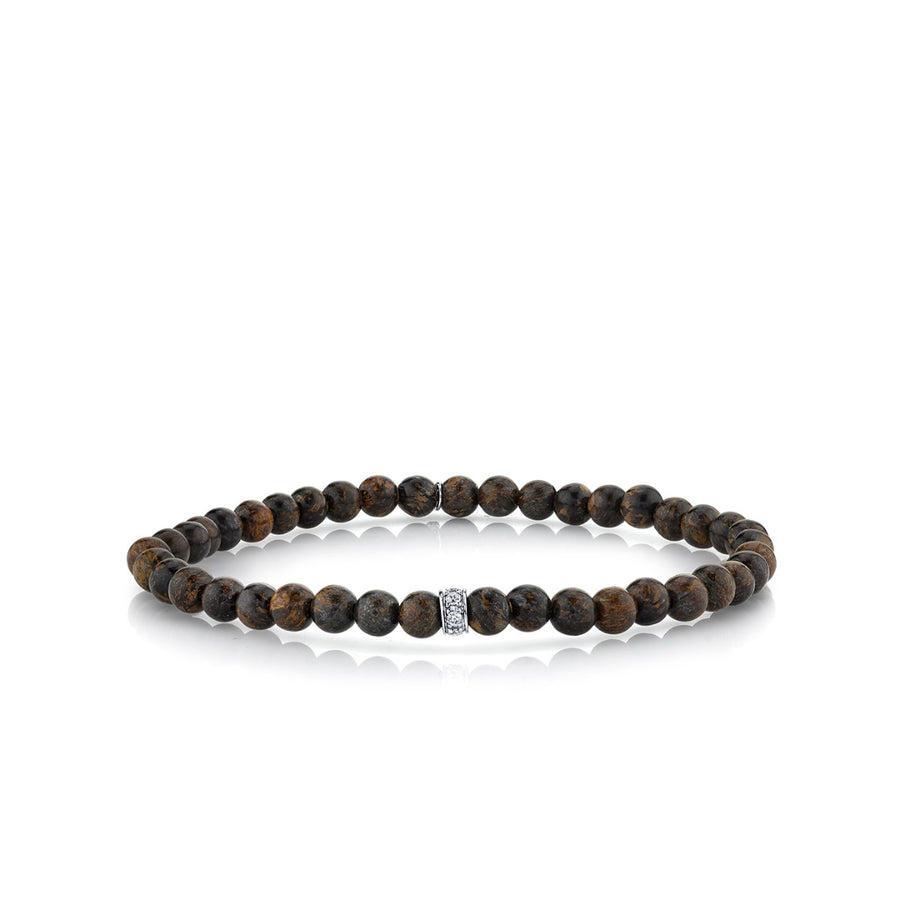 Earthy elegance meets refined sparkle in this 14k white gold and diamond pavé rondelle bracelet. The 4mm rondelle—set with shimmering pavé diamonds—adds a touch of brilliance to a strand of 4mm bronzite beads, known for their grounding energy and natural bronze-like sheen.