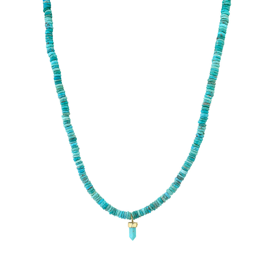 This meaningful charm rests on a 24" strand of smooth 6mm Arizona turquoise beads, known for their vivid blue-green hues and healing properties. Each Sydney Evan beaded necklace is carefully strung on a durable stretch cord and finished with our signature 14k gold SE logo charm, combining artisanal craftsmanship with everyday wearability.