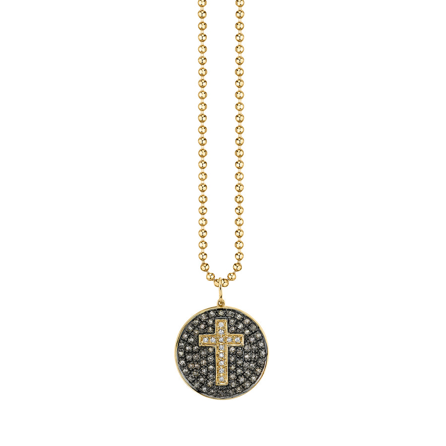 Express faith and timeless elegance with this striking 14k yellow gold large cross medallion necklace. The charm measures approximately 5/8" in diameter and is adorned with pavé-set diamonds, adding a subtle yet radiant sparkle to this meaningful symbol.