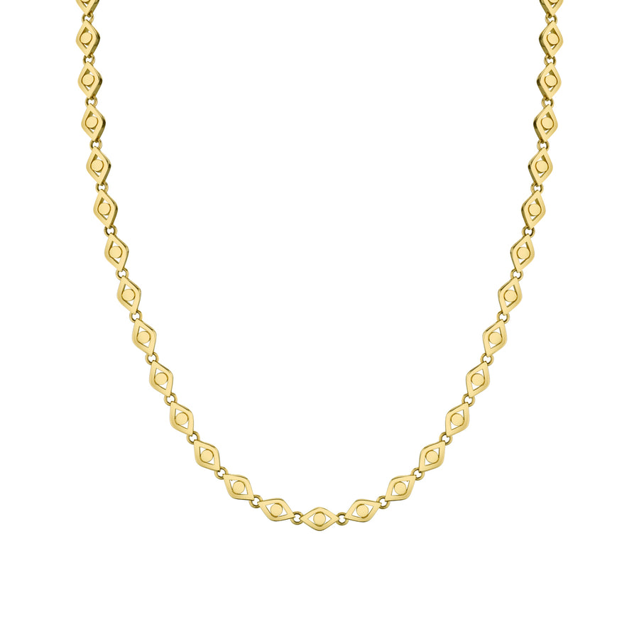 This 14k yellow gold protective eye charm link necklace is a stunning and meaningful piece of jewelry. Crafted with high-quality 14k yellow gold, the necklace features a delicate charm of the iconic protective eye, known for its protective symbolism across cultures. The protective eye is believed to ward off negative energy, offering strength and protection to the wearer. The chain measures approximately 18 inches in length, making it a versatile piece that can be worn every day or layered with other necklaces. Whether you wear it for its stylish look or its spiritual significance, this necklace adds a touch of elegance and positive energy to any outfit. Perfect for those seeking both beauty and protection, this 14k yellow gold protective eye necklace makes a thoughtful gift for yourself or a loved one.