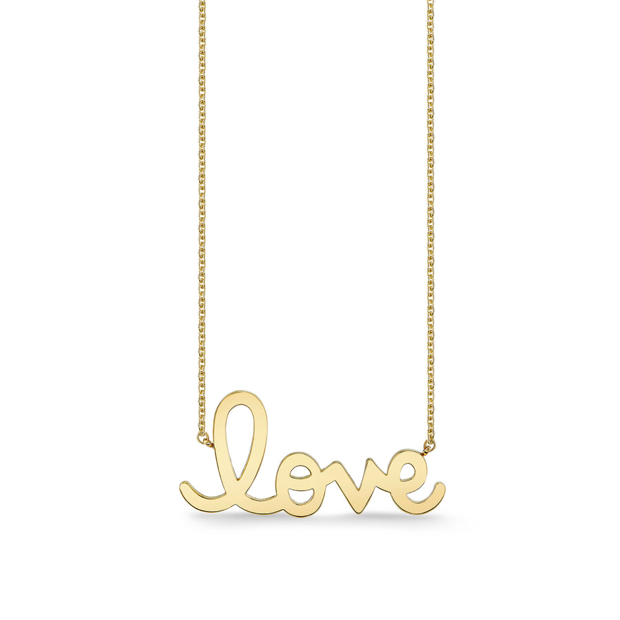 Embrace the essence of love with our bold 14k yellow gold necklace, featuring the word 'love' in our signature SE hand-drawn script. This piece is not just jewelry but a symbol of affection, passion, and connection. The 'love' pendant measures approximately 1 1/2' wide by 3/4' high at its tallest and widest points, making a striking statement.