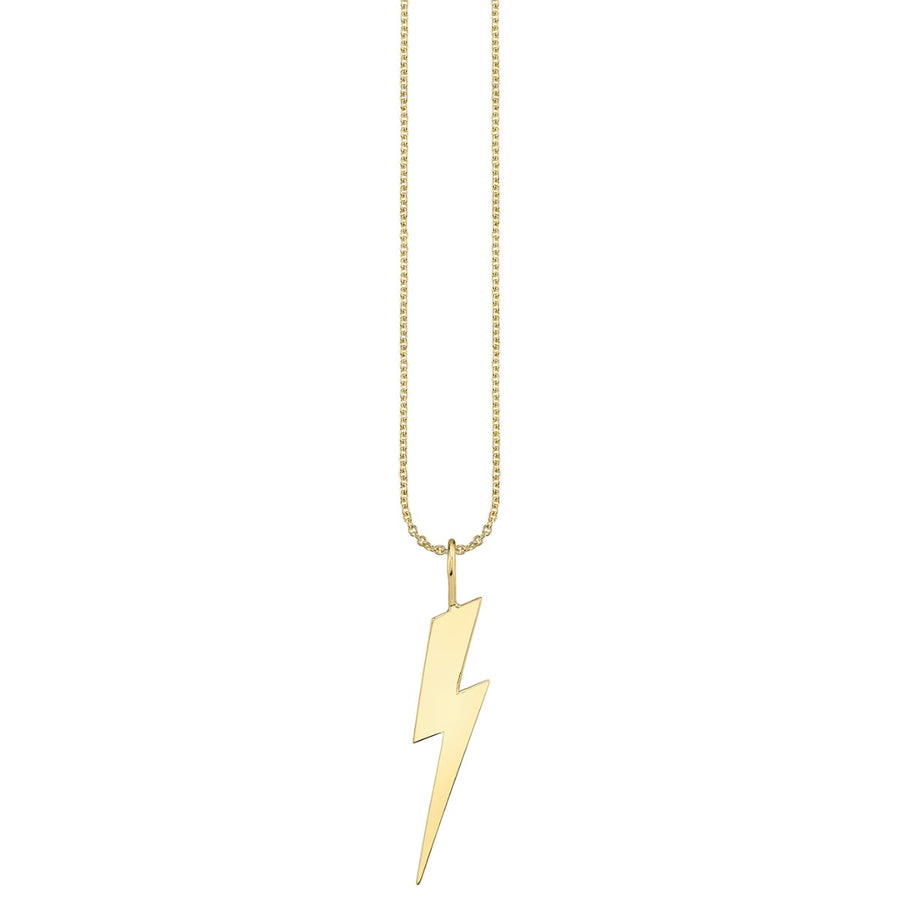 Embrace the power of energy and transformation with our Large 14k Gold Lightning Bolt Charm from the Pure Collection. The striking lightning bolt represents strength, change, and sudden inspiration—capturing the raw, untamed force of nature. Crafted from fine 14k gold, the charm measures approximately 1 1/8" in length and 1/4" in width, making it a bold statement piece. Paired with a fine 14k gold medium cable chain, which measures approximately 18" in length, this necklace serves as a symbol of your resilience and personal power, perfect for those who move through life with passion and purpose.