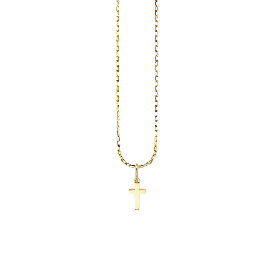 This delicate 14k yellow gold tiny cross charm necklace is a timeless symbol of faith, strength, and protection. The finely crafted 14k gold charm rests gracefully on a lightweight square chain, which enhances its elegance without compromising comfort. Available in 16" and 18" lengths, this necklace is versatile enough to be worn every day or on special occasions. The cross represents a connection to spiritual beliefs, making this piece not only a beautiful accessory but also a meaningful reminder of inner peace and guidance.