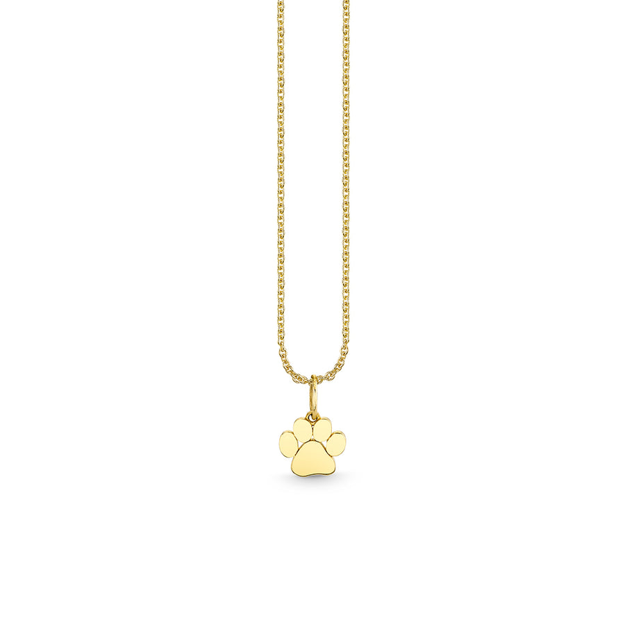 Celebrate the unconditional love and loyalty of a canine companion with this elegant 14K yellow gold paw print charm necklace. The dainty charm, measuring approximately 1/4" in diameter, symbolizes friendship, protection, and the cherished bond between you and your furry friend. The fine 14K gold cable chain is thoughtfully designed at 16" with an extender at 18", offering versatility for any neckline.