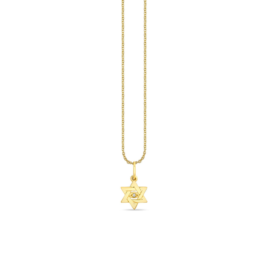Made from 14k yellow gold, this tiny charm features a delicate Star of David with a marquise eye in the center. Measuring approximately 3/8 inch, it is the perfect size to add a touch of elegance to any outfit.